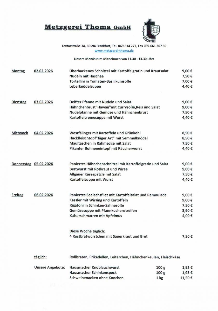 Metzgerei Thoma | Fleischerei, Partyservice & Catering, Frankfurt am Main | Unsere Wochenkarte